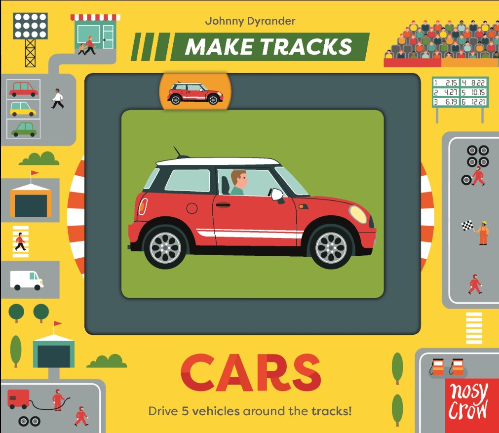 Learn vehicle vocabulary with simple first words, clear diagrams, and helpful text prompts to encourage discussion. Then, drive 5 types of transportation around 5 tracks with a moving slider. The perfect book for children who love racecars-and being in the driver's seat!