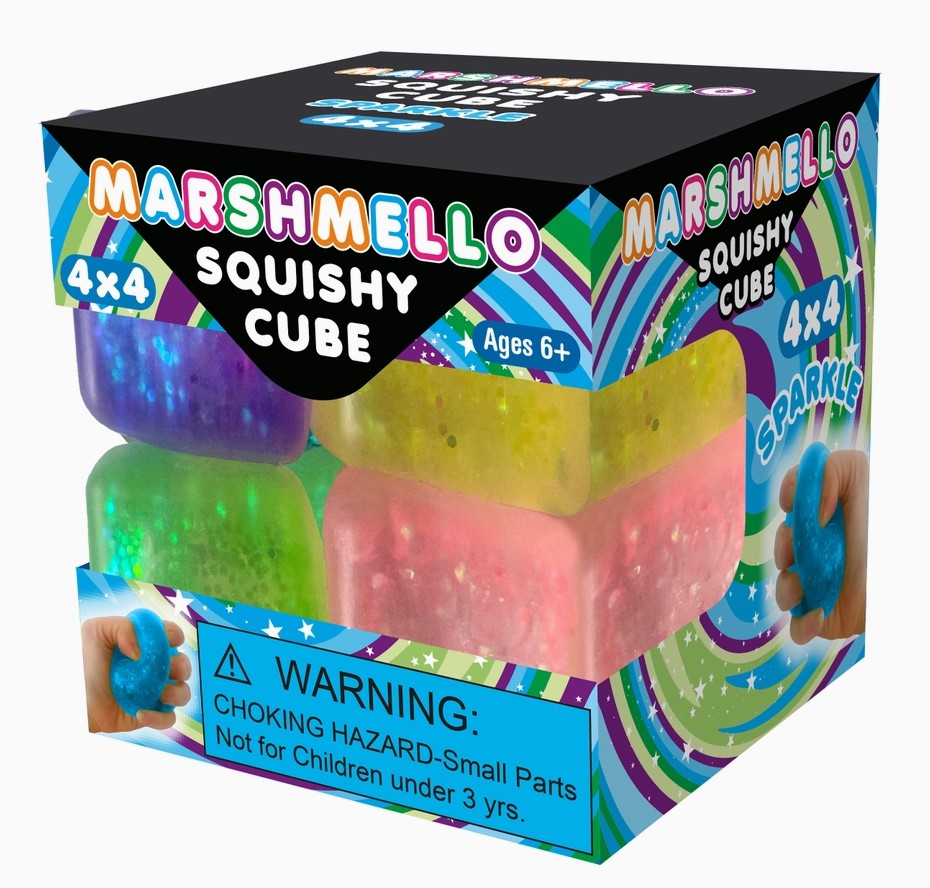Get ready for a glittery squish sensation! The Marshmello 4x4 Squishy Mini Cube Glitter is a pocket-sized cube bursting with shimmer and stress-relieving fun. This mini cube may be small, but it packs a satisfying squish and slow-rise feel that kids and adults love. Coated in sparkly glitter and soft marshmello texture, it's a dazzling addition to any fidget toy collection.