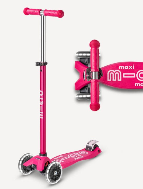- Micro's 3-wheeled Mini Deluxe LED scooter, with a lean-to-steer design, offers a stable ride that supports toddlers and small children as they master balance and coordination. Features two front LED motion-activated light-up wheels. (No batteries required!)