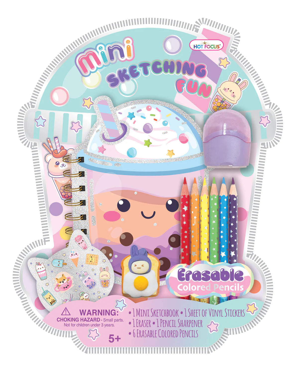Sip, sketch, and sparkle! The Girls Hot Focus® 10-piece mini boba sketchbook set is bursting with creativity and cuteness. This is perfect for on-the-go doodles, colorful creations, and self expression wherever inspiration strikes. Recommended for ages 5+.