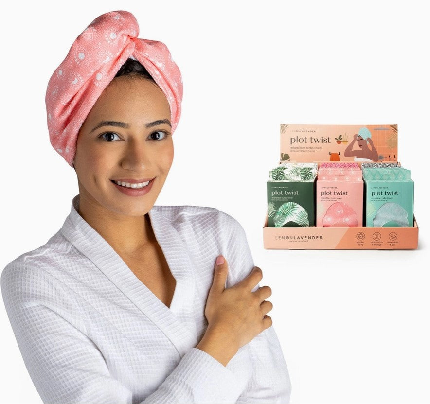 Shaped to fit post-shower locks, our super absorbent turbo towel quickly dries your hair without damage from friction or heat.