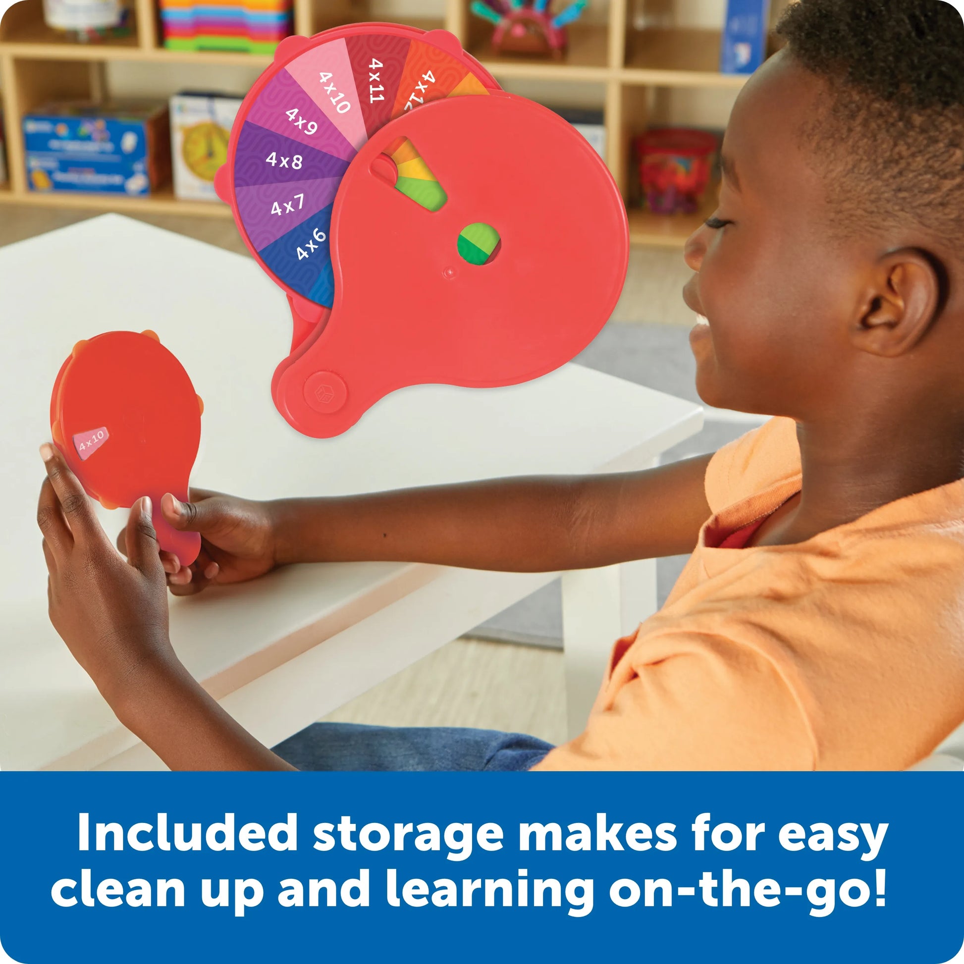 Take new math skills for a spin with this handheld learning wheels! Kids can pop in a card, spin to an equation, then flip to check the answer. This set includes 13 cards—with one for facts 0-12, it’s an all-in-one way to practice the multiplication table. Cards store on the back of the wheel for easy cleanup and on-the-go learning. Age 6+ | Grade 1+