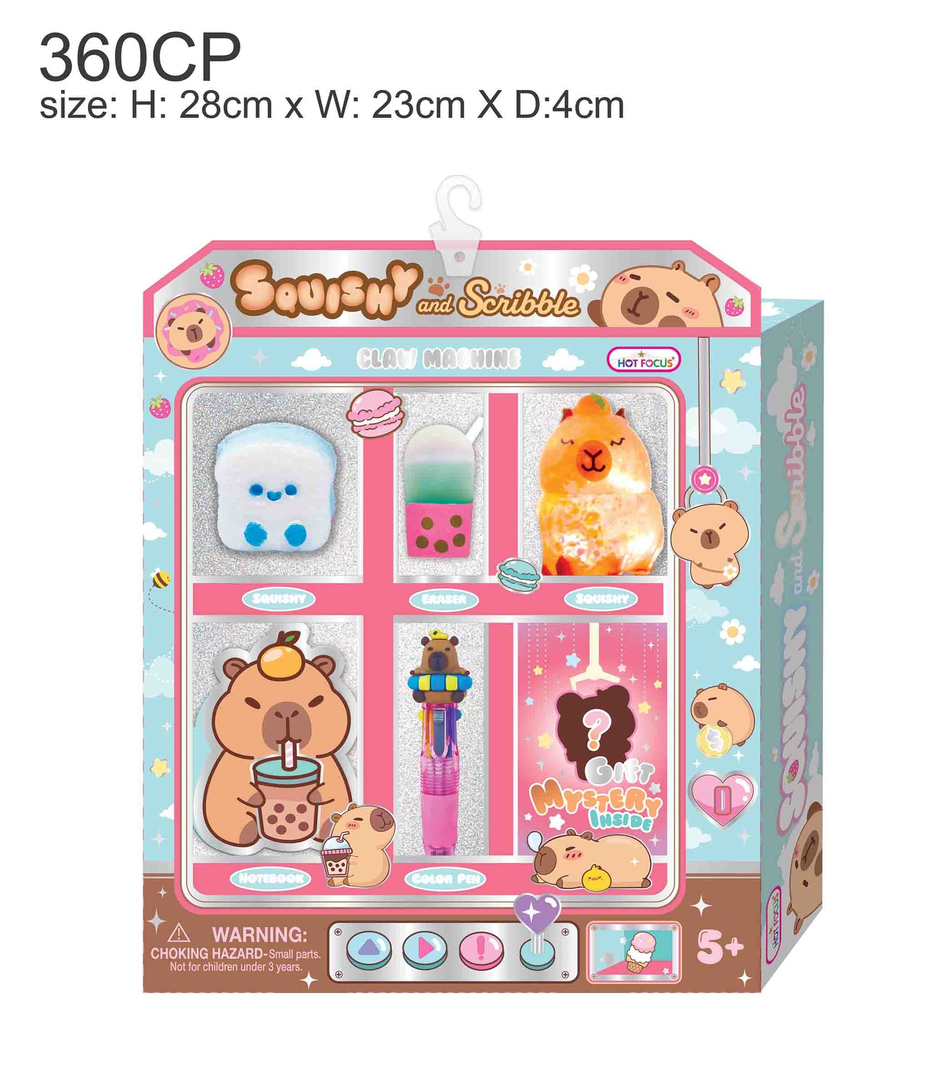 • Includes two squishies, an eraser, notebook, colored pen, and surprise mystery gift!