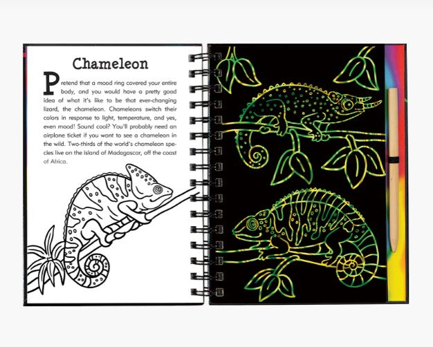 Book contains 20 black-coated scratch-off pages, 20 illustrated pages with informative text, and 20 extra pages for independent drawing and sketching.