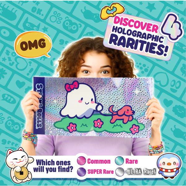 Mystery Collectibles: Find and discover all the SUPER and ULTRA rare Jumbo Stickies with unique holographic effects!