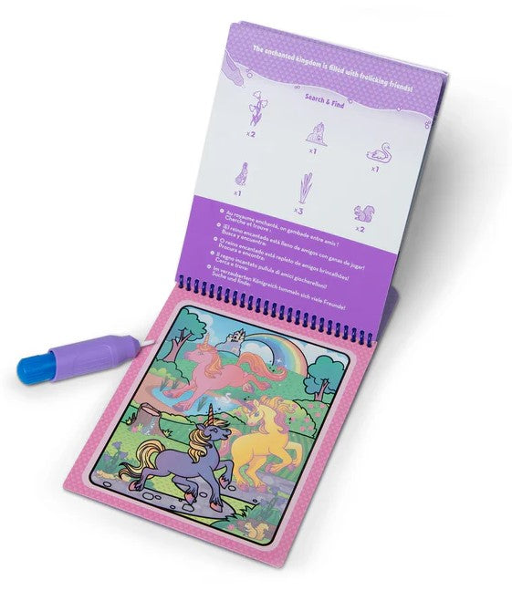 - Use the refillable chunky water pen to color with water and reveal vibrant colors on 4 unicorn-themed spiral-bound coloring boards