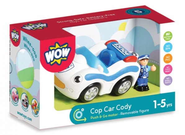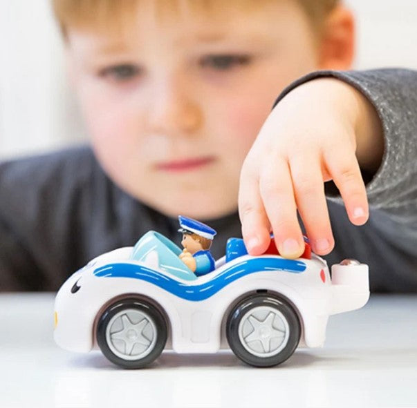 Have fun playing 'Cops and Robbers' by chasing the villains in Cop Car Cody. Fit the policeman Play Friend into Cody's police car driver seat and push him to power his Push & Go motorized engine to speed him straight to the scene of the crime!